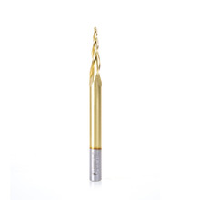 Especialmente diseñadas para el perfilado y tallado CNC en 2D y 3D en plástico, aluminio y madera con máquinas CNC. Las puntas de punta esférica de alto cizallamiento cortan contornos 2D y 3D suaves con un escalonamiento reducido, mientras que el recubrimiento ZrN patentado (aplicado mediante el proceso de recubrimiento de deposición física de vapor) proporciona una alta resistencia al desgaste, bordes de corte más afilados, mayor vida útil de la herramienta y menos fricción y acumulación de calor. Algunas de las herramientas de tallado de Amana Tool®, como se puede apreciar, tienen un diámetro muy pequeño, por lo que cualquier carga de viruta de material debe reflejar ese pequeño tamaño. Sin embargo, puede soportar hasta 6.000 RPM. Un chorro de aire dirigido para mantener alejadas las virutas junto con la refrigeración de la herramienta y la pieza de trabajo son siempre bienvenidos.