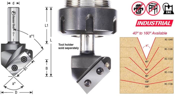 Cada fresa de ranura en V viene completa con cuchilla/cuchillas de inserción de carburo sólido diseñadas con ángulos de afilado únicos para eliminar la acumulación en el punto V.