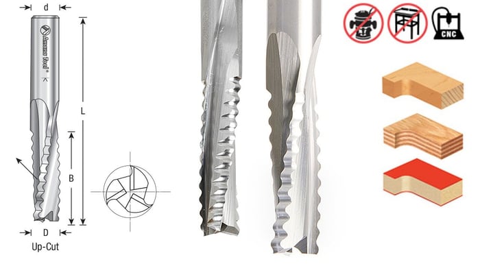 Amana Tool CNC Solid Carbide Roughing Spirals have a unique chipbreaker design. Also available as downcut roughing spirals.
