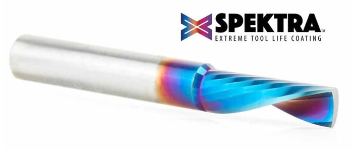 El recubrimiento de nanocompuesto nACo® utilizado en la línea Spektra de Amana proporciona hasta 2,5 veces más vida útil de la herramienta en comparación con las brocas sin recubrimiento. Endurece el filo de corte a unos 4.500 Vickers y reduce la fricción, el calor y las microastillas, todo lo cual prolonga la vida útil de la herramienta y mejora la calidad del acabado.