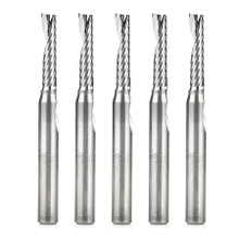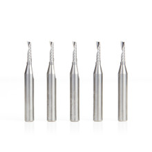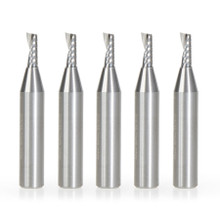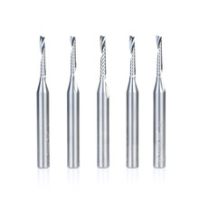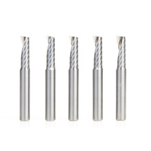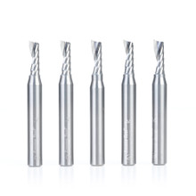 | 1/8 | 3/4 | 1/4 | 2-1/2 | Corte ascendente | 1 | Herramienta Amana | 51486-5 | | | Amana Tool 51486-5, Paquete de 5 CNC SC Spiral O Single Flute, Corte de Aluminio 1/8 D x 3/4 CH x 1/4 SHK x 2-1/2 pulgadas de largo Up-Cut Router Bits con acabado de espejoMás Información | $314.50$235.87 | |