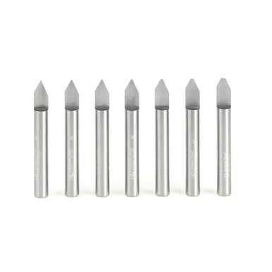 Amana Tool 45769 Juego de 7 brocas para fresadora de metal duro para grabado a 60 grados de 1/4 pulgada SHK x 2 pulgadas de largo