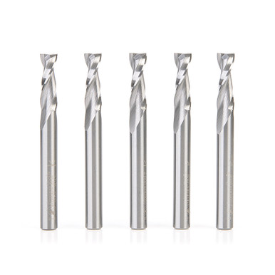 Amana Tool 46102-5, paquete de 5 brocas de rebaje en espiral SC de 1/4 D x 3/4 CH x 1/4 SHK x 2-1/2 pulgadas de longitud y 2 canales de corte ascendente