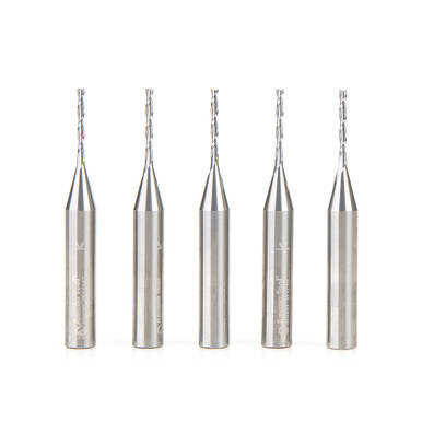 Amana Tool 46009-5, paquete de 5 brocas de fresar de carburo macizo en espiral de 2 canales de 1/16 D x 1/2 CH x 1/4 SHK x 2 pulgadas de longitud de corte ascendente