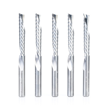 Amana Tool 51513-5, Paquete de 5 Fresas CNC SC Spiral O de un solo filo, corte de plástico 1/4 D x 1-1/2 CH x 1/4 SHK x 3 pulgadas de largo con acabado de espejo